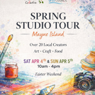 Very much looking forward to the 2026 Spring Studio Tour which is being put on by Lorie Brown (Gardenia) and Lucie Walker (artist/musician) this year. Always a fun event with people coming far and wide to explore Mayne Island’s creative talents – and have a chance to look inside artist’s studios which are usually closed…