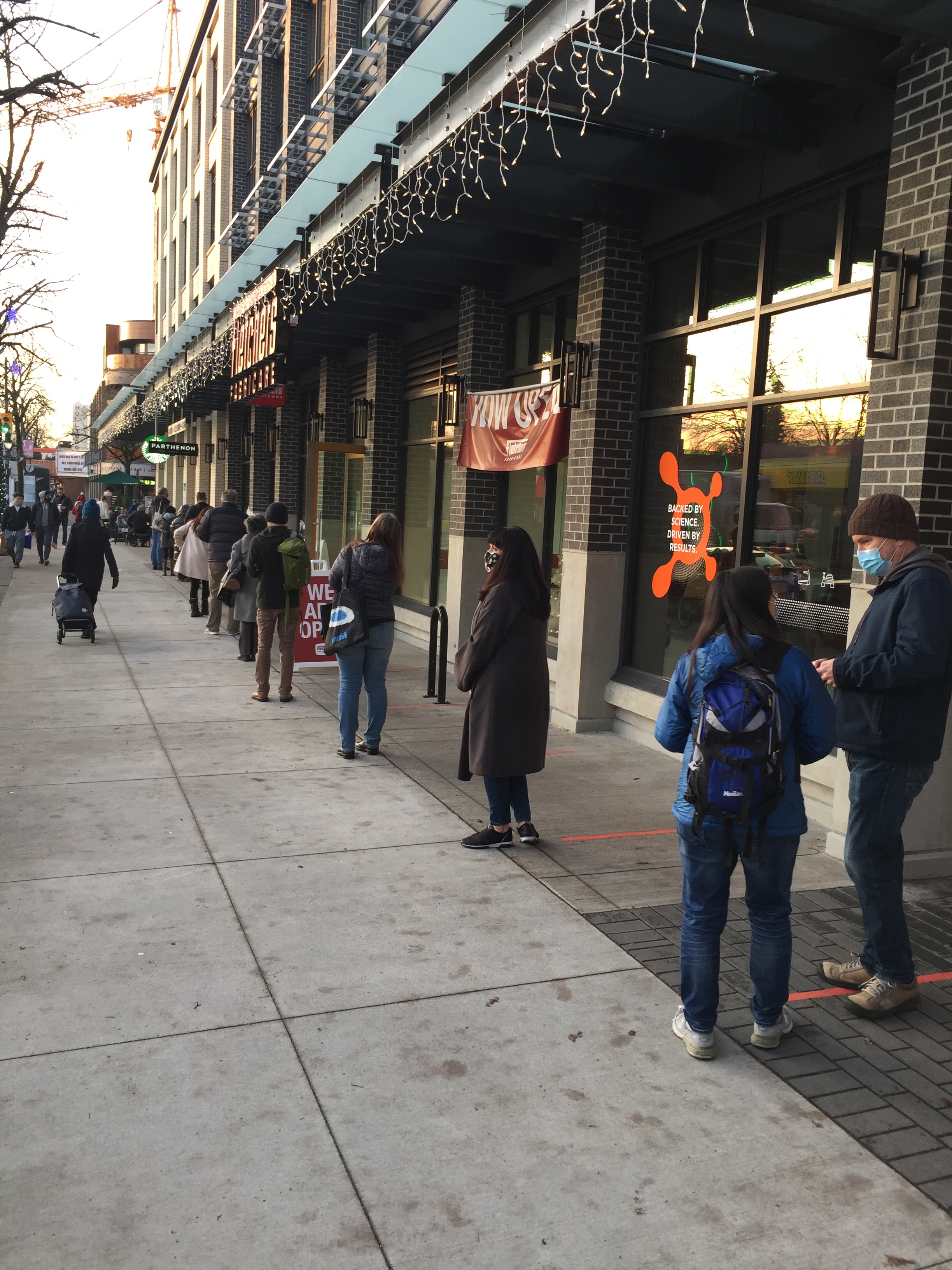 A 20 minute wait to get into The Parthenon, my neighbourhood deli ; The Hummingbird feeder that provides company and amusement in my Covid-Islolated world…in this instance, covered with 4 or 5 tiny house wrens who also seem to enjoy sugar water; Cathy and I in front of our newly-decorated tree…it’ll be just the three of us this year, and perhaps a Zoom Family Xmas.