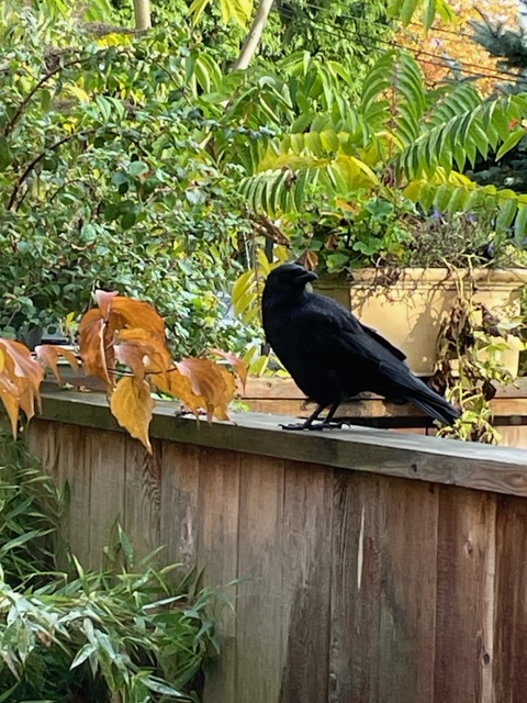 As I write this, I am sitting at my desk in Kitsilano. The sun is out and there’s not a cloud in the sky, and my early morning guest – a crow which I have been trained to feed – is sitting on the ledge outside my window waiting for his (or her) daily pumpkin seeds.