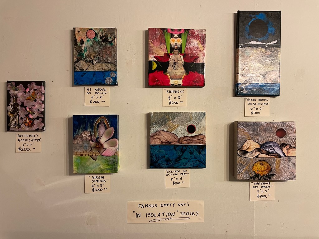 And, there’s still time to drop in and enjoy some of the lovely collage work that Famous Empty Sky has produced during the pandemic, “In Isolation Series” with a couple of new pieces added since last week!
