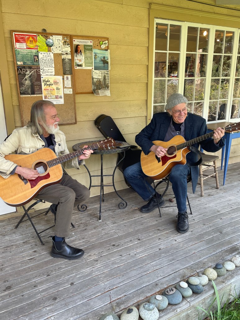 Happy to announce that Hrothgar Jackson (guitar, vocals) and Jim Heshedahl (Bass, vocals) will be playing original songs from Hrothgar’s new Songbook on Sunday July 17 from 1:30 – 3. Because we anticipate the weather to be warm & sunny, Hrothgar and Jim will be playing outside on the front porch of Shavasana Gallery & Café.