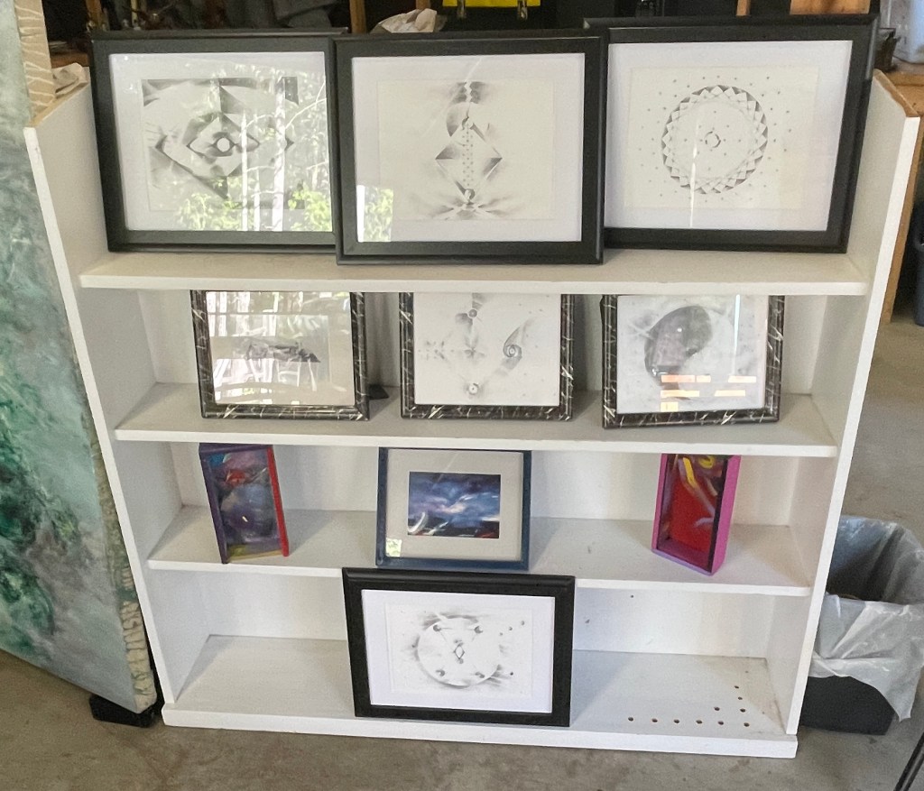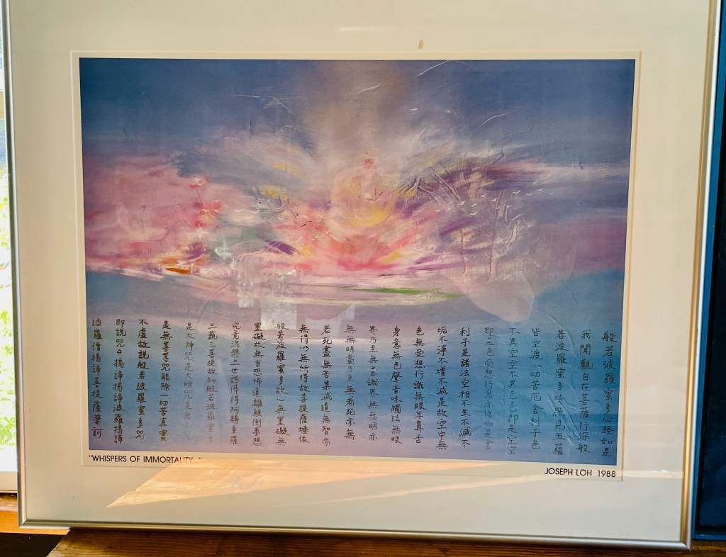 Joseph’s Studio contains an interesting and varied selection of his work from a long career as an artist which includes the above framed drawings (left), and “Whispers of Immortality” (right) inspired by his many travels and studies in consciousness